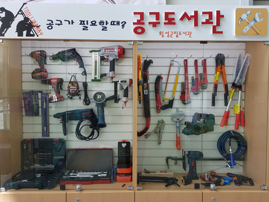 횡성군립도서관에서 운영되는 공구도서관은 일상생활에 필요한 생활용품이지만, 사용빈도가 낮아 가정에서 구매하기에는 부담스러운 다양한 생활 공구를 무료로 대여해 준다.