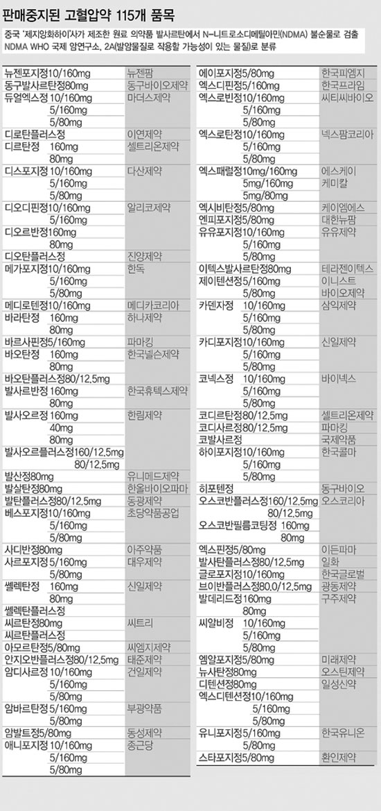 A약국 관계자는 “정부 발표 후 문의 전화가 빗발쳤다. 자신이 복용하는 약품이 교환 품목에 해당하는지 물었다”며 “판매 중지 품목은 정부 발표 후 즉시 처방이 금지됐고, 회수는 차차 진행되는 것으로 알고 있다”고 전했다.