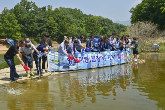 | 군은 17일 횡성호(갑천면 망향의 동산) 일원에서 향토어종(뱀장어) 치어방류행사를 개최했다.