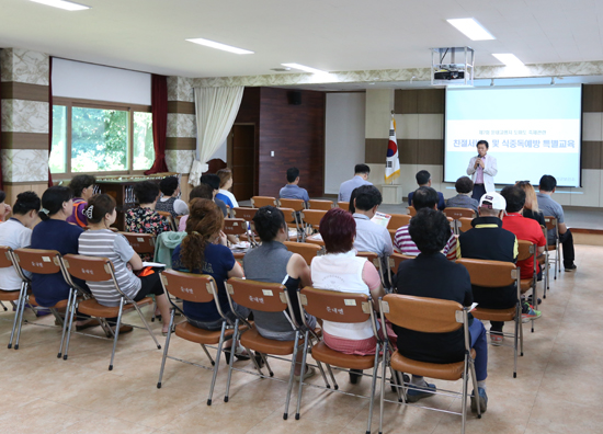 | ↑↑ 둔내면외식업분회(회장 최진구)는 제7회 둔내고랭지토마토축제 성공개최를 위해 지난 1일 오후 3시 둔내면행정복지센터 2층 회의실에서 둔내면외식업협회 회원 47명이 참석한 가운데 친절교육을 실시했다. |