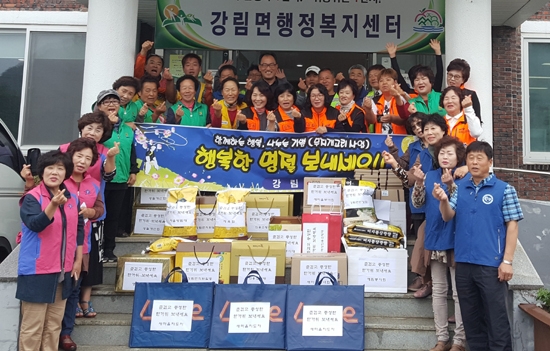 | 강림면 무지개고리사업 10개 단체(애림봉사회, 새마을부녀회, 지도자협의회, 남·녀의용소방대, 체육회, 자율방범대, 번영회, 생활개선회, 오렌지봉사대)는 지난 20일 추석을 맞아 관내 30명의 독거어르신을 직접 방문해 백미, 기름세트, 휴지 등 생필품을 전달하는 뜻 깊은 시간을 가졌다.
