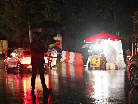 농업기술센터, 밤비 맞으며 교통안내