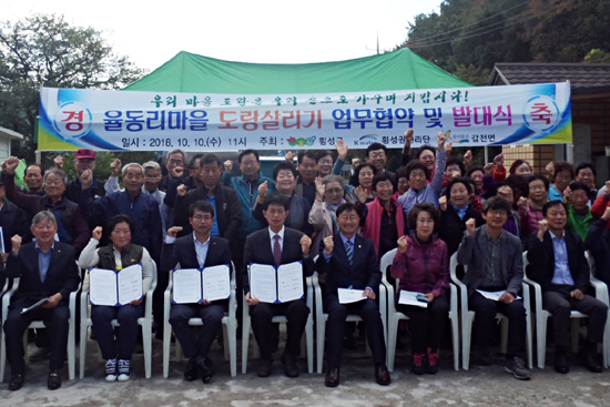 | 갑천면 율동리 도랑살리기 업무협약 및 발대식이 지난 10일 오전 11시 율동리 마을회관에서 이병한 부군수, 권순근 군의회 부의장, 이용표 율동리 마을이장, 김수명 K-water 횡성원주권지사장, 기관단체장, 마을주민 등 80여명이 참석한 가운데 열렸다.