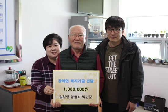 박 씨는 정년퇴직 후 노후를 보내며 평소 용돈을 모아 다른 장애인들의 재활에 도움이 되었으면 한다며 현금 100만원을 전달했다.