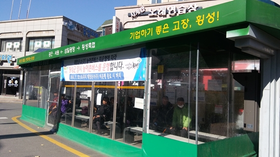 | 겨울철 대중교통을 이용하는 주민들이 따뜻하게 농어촌버스를 기다릴 수 있도록 농어촌버스 승강장에 발열의자와 바람막이가 설치됐다.