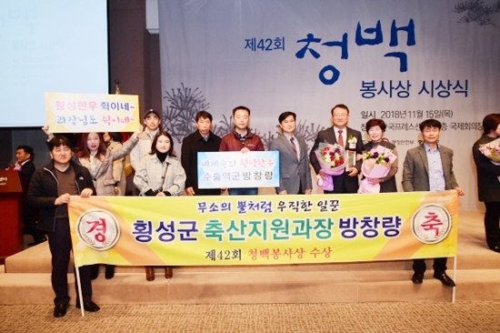 | 방창량 횡성군 축산지원과장이 지난 15일 한국프레스센터에서 개최된 제42회 청백봉사상 시상식에서 수상의 영애를 안았다.