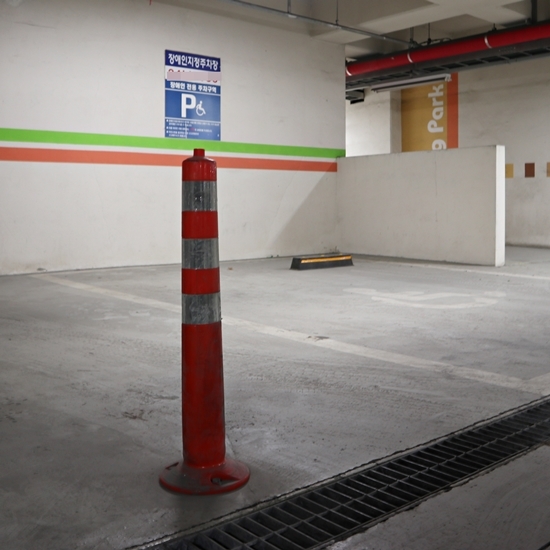 | ↑↑ ▲한 아파트 장애인지정주차구역. 불법 주·정차를 방지하기 위한 차단봉까지 설치돼 있다. |