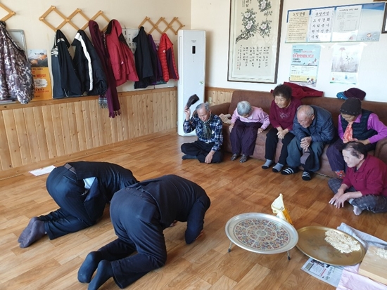 “어르신들, 세배 드리러 왔습니다.”