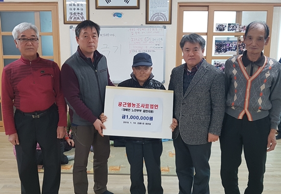 공근영농조사료법인(대표 이세종)에서는 2018년 수익금의 일부를 어려운 이웃에게 전달하기 위해 대상자를 찾던 중 장애인 노인부부가 어려운 생활을 하고 있는 것을 알고 분기 25만원씩 4회에 걸쳐 지원키로 했다.