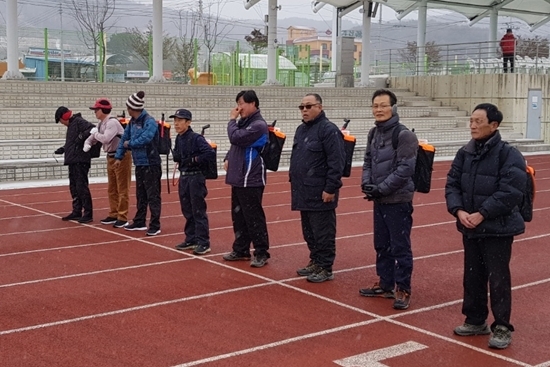둔내면 산불감시원 20명 모집에 25명이 지원한 가운데 지난 21일 오후 2시 둔내종합운동장에서 체력검정심사를 실시했다.