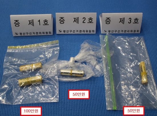 광주시 한 조합의 입후보예정자였던 B씨는 본인을 지지해 달라고 부탁하며 한 조합원 자택을 찾아 그 가족 등 4명에게 현금 200만 원을 건네다 광주지검에 고발됐다. B씨는 5만원 권을 10장씩 말아 악수하며 건네는 방법을 사용했고, 해당 장면은 CCTV 영상에 고스란히 찍힌 것으로 알려졌다.
