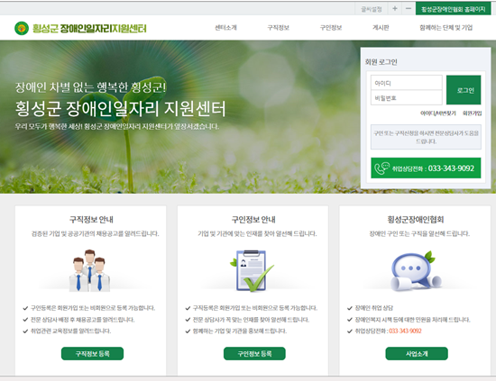 지난해 12월말 횡성군장애인일자리지원센터 홈페이지를 구축하고, 2월까지 홍보 및 시험 운영을 실시한 가운데 3월부터 운영에 들어갔다.
