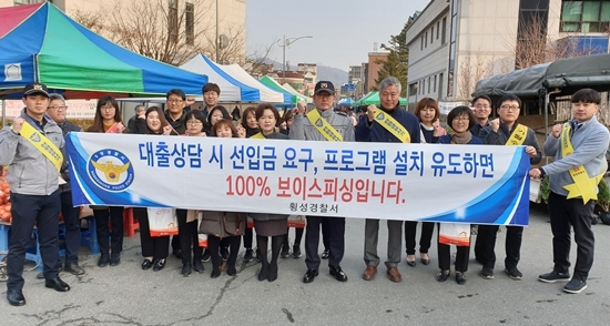 횡성경찰서·횡성우체국이 지난 11일 횡성5일장터를 돌며 보이스피싱 피해예방 캠페인을 실시했다.