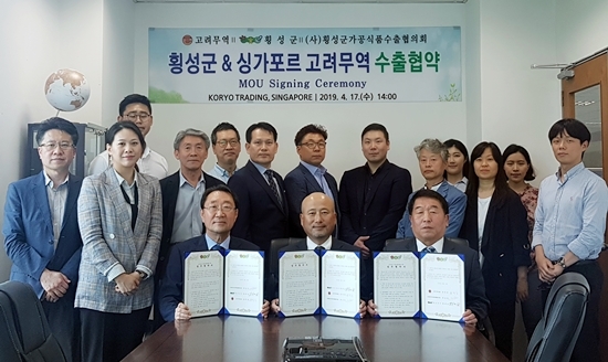 횡성군은 싱가포르 한국식품 전문유통회사인 고려무역과 수출협약을 위한 양해각서(MOU)를 체결했다.