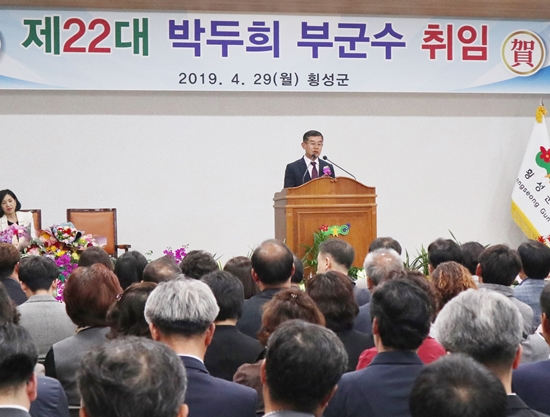 제22대 박두희 부군수가 지난달 29일 오후 5시 군청 대회의실에서 가족, 친지, 공무원, 지역주민 등이 120여명이 참석한 가운데 취임식을 갖고 본격적인 업무에 들어갔다.