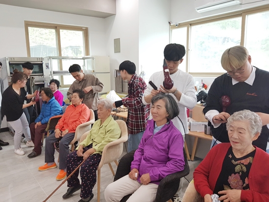 이날 장수사진이 없는 관내 어르신 100명을 대상으로 가장 아름답고 멋진 모습을 사진으로 남길 수 있도록 송호대학교 뷰티케어과 학생 20명은 어르신들의 헤어와 메이크업을 위한 재능을 기부했다.