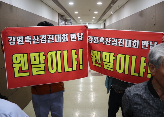 이날 횡성축협 조합원들은 한 군수의 입장 변화를 유도하기 위해 오후 5시에 예정된 각 단체장의 목우회 회의의 입장도 요구했다.
