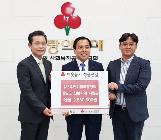 사단법인 우편취급국중앙회(회장 이관형·전 도의원)는 지난 14일 동해안 산불지역 피해주민들을 위해 각 지역 동료국장들이 십시일반 모은 지원성금 253만원을 강원사회복지공동모금회에 전달했다.
