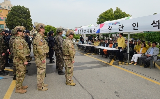 이날 훈련에서는 폭탄 테러로 인한 인명 및 화재 발생, 청사에 있는 직원 및 민원인들은 행동요령에 따라 신속히 대피하고, 자위 소방대원으로 편성된 직원은 사무실에 비치된 소화기를 통해 적극적인 초기 진화를 시도하며, 출동한 119 소방대원과 함께 부상자 응급조치와 화재 진압을 실시하고 군청 내에 있을 다른 폭발물을 수색해 추가 발견된 폭발물을 제거를 끝으로 훈련을 종료했다.