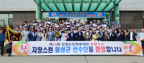 한규호 군수는 “횡성군민의 날(6.18)을 앞두고 이번 종합우승은 횡성의 자존심을 되찾고 군민들에게 큰 기쁨을 줬다”며 “도민체전 우승을 달성한 횡성군 선수단과 물심양면으로 응원한 군민들이 너무나 고맙고 자랑스럽다. 앞으로도 횡성군의 역량을 결집하는데 모두 다함께 최선을 다해나가자”고 말했다.