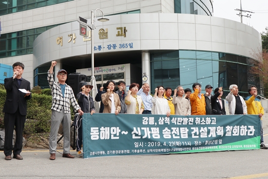 대책위는 “한전이 추진하는 사업은 묻지마 사업으로 볼 수밖에 없다. 불필요한 전기를 위해 발전소를 지속적으로 건설하는 것은 전력마피마의 배만 불리는 사업”이라며 “한전은 막대한 예산을 불필요하게 낭비하고 자연경관 등 환경파괴로 인한 주민피해가 발생하는 사업을 즉각 중단하고 다시 원점으로 돌아가 송전선로 사업을 주민에게 투명하게 밝혀야 한다”고 강조했다.