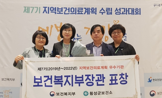 횡성군보건소는 제7기 지역보건의료계획 수립 보건복지부 평가결과, 강원도 우수지자체로 선정돼 지난 4일 서울그랜드 컨벤션센터에서 열린 제7기 지역보건의료계획 성과대회에서 장려상을 수상했다.