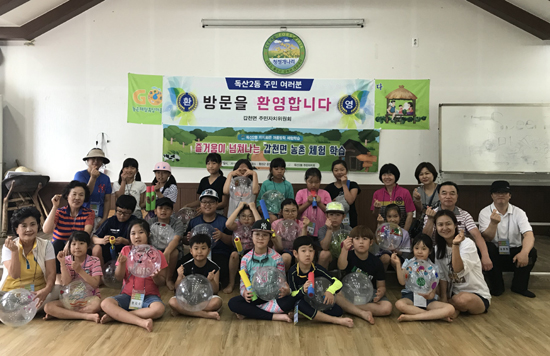 | 갑천면 주민자치위원회(위원장 황정근)는 지난 9일 자매결연을 맺은 서울특별시 금천구 독산2동 주민자치회, 독산2동 저소득층가정 어린들과 함께 갑천면 대관대리 개나리영농조합법인(대표자 대관대리이장 김학종) 농촌체험휴양마을에서 영농체험 교류행사를 가졌다.