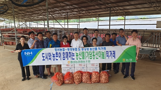 농업인들의 창의성과 끊임없는 노력으로 생산된 가담마늘을 횡성농협(조합장 최승진)이 적극적으로 판매에 나서 서울 강서농협(조합장 한명철)에 15톤(3000접)의 마늘을 판매하게 이르렀다.