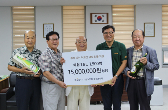 국순당이 민족 명절인 추석을 앞두고 횡성지역 다문화가정, 지역 어르신 등 1,700여 가구에 전통방법으로 빚은 우리 차례주 ‘예담’ 1700병(시중가 1,700만 원 상당)을 기증했다.