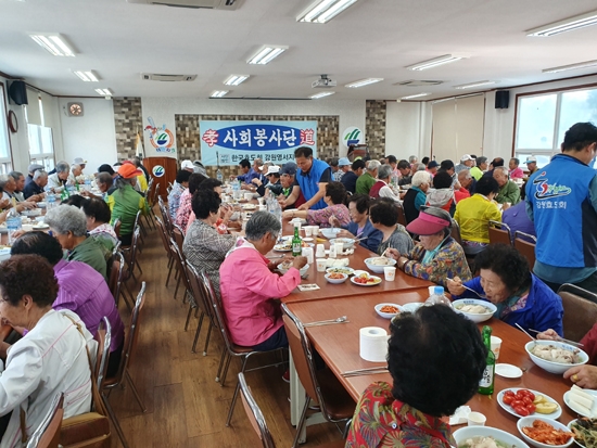 | 강원효도회는 지난달 29일 공근면 복지회관(금계관)에서 65세이상 어르신 200여명을 대상으로 한방진료(느티나무 한의원), 가훈대필, 난타 등 다채로운 행사를 실시하고, 정성이 가득한 삼계탕을 제공했다.