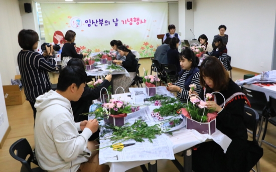 지난 10일 임신을 축하하기 위한 작은 파티에는 플라워 태교(꽃바구니 만들기), 플룻공연, 레크레이션, 출산 전·후 우울증 예방을 위한 마인드 강연 등 다채로운 행사로 임산부와 태아가 행복한 시간을 가졌다. 행사 후에는 임산부끼리 교류할 수 있는 다과와 담소 시간도 마련됐다.