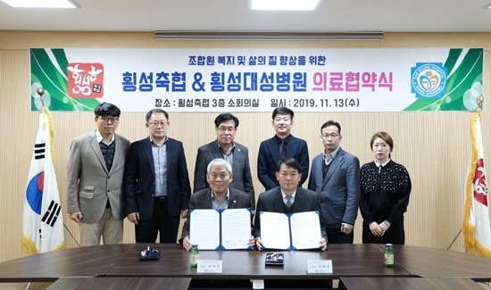 횡성축협(조합장 엄경익)과 횡성대성병원(병원장 신형철)은 지난 13일 횡성축협 조합원의 건강복지 증진을 위해 의료협약을 체결했다. 이날 협약으로 인해 조합원 및 직계가족에게 진료비 할인 등 각종 혜택이 주어진다.