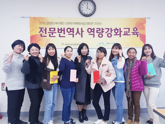 | 횡성군건강가정·다문화가족지원센터는 안정적인 한국생활 정착과 맞춤형 여성일자리를 제공하고자 (사)한국문인협회 원주지부 사무국장 및 원주 성바오로 다문화센터 한글강사인 김영희 시인을 초빙해 10월 22일부터 12월 17일까지 ‘전문번역사 역량강화교육’을 운영하고 있다.