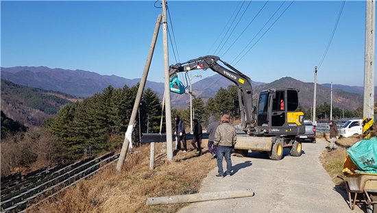 강림면 고비덕 마을 주민들 가드레일 설치 화제