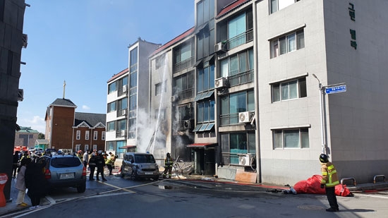 | 불을 처음 목격한 주민 한봉희씨는 갑자기 ‘펑’하는 폭발음과 함께 연기가 치솟았다며 가스폭발로 추정된다고 말했다. 불은 1층과 2층 일부를 태우고 40여분 만에 진화됐다.