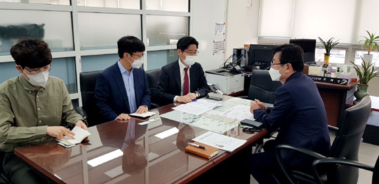 | ↑↑ 장신상 군수가 4월 5일 산업통상자원부를 방문, 제조산업정책관 박재영 국장을 면담하고 산자부의 일방적 규정 강화의 부당성을 지적하는 한편, 화물차 구조상 에너지 소비효율이 5.0㎞/kWh 이상 나오기가 어려운 상황을 감안해 관련 규정을 개정해 줄 것을 강력히 요구했다. |