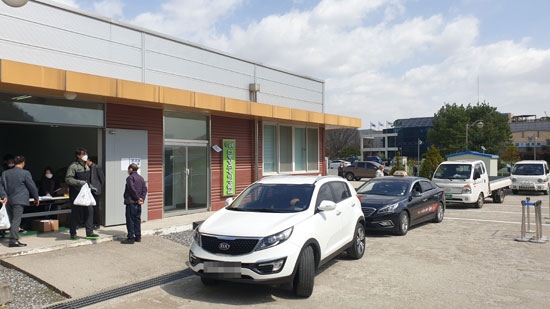 | ↑↑ 참깨·들깨 우량 종자 공급을 신종 코로나바이러스 감염증(코로나19) 확산 방지를 위해 드라이브 스루 방식으로 진행하고 있다. |