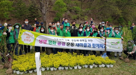 또한 기후위기에 대응하는 생명살림운동, 상생과 통합을 위한 평화나눔운동, 이웃과 좋은 마을을 만드는 공경문화 공동체 운동을 힘차게 펼쳐나갈 것을 다짐하면서 부대행사로 갑천면 포동리 군유지에 황금조팝나무, 자두나무 등 나무 200주를 식재했다. |