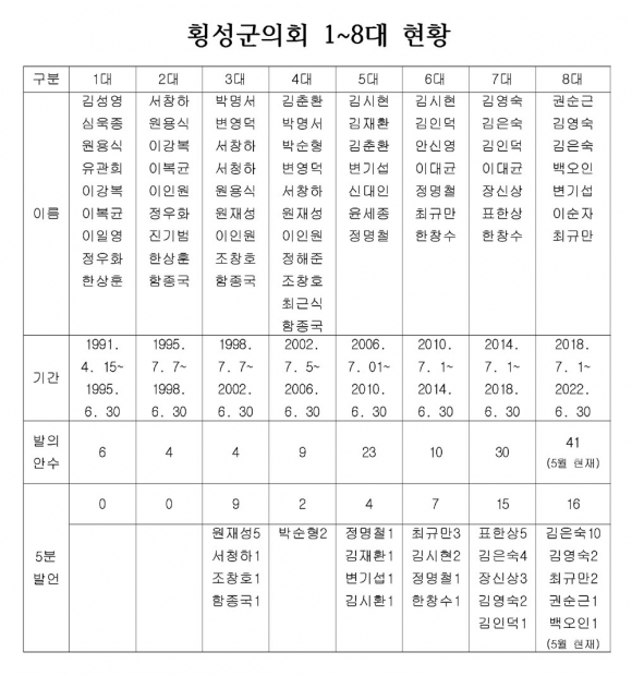 횡성군의회가 1991년 4월 15일 개원한 이래 지난 4월 임시회로 300회를 돌파했다.