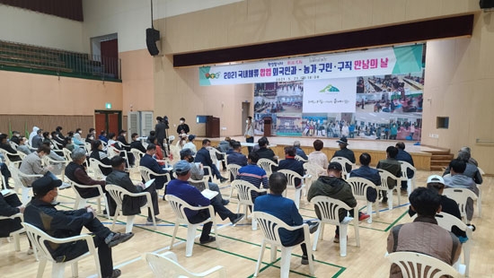 | 횡성군은 심각한 농촌 인력난 해소를 위해 지난 21일 오전 10시 둔내면 실내체육관에서 ‘2021 농가와 외국인 근로자 만남의 날’ 행사를 열었다.