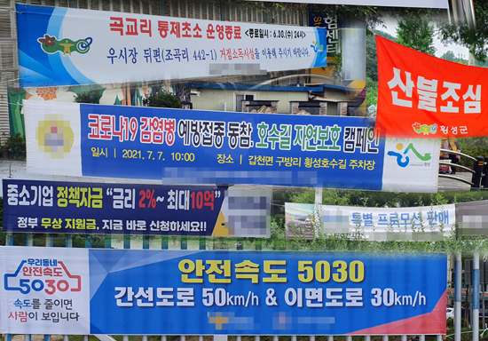 또 다른 주민 B씨는 “코로나 때문에 어려워서 한 푼이라도 더 매상을 올리기 위해 홍보현수막을 제작해 수수료를 내고 지정 게시대를 이용하고 있는데 불법 현수막은 별다른 제재를 하지 않는다면 괜히 억울한 느낌이 든다”고 말했다.