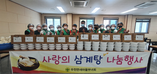 | 우천면 새마을부녀회(회장 홍정숙)는 초복을 맞아 지난 7일 홀몸 어르신, 저소득층 등 복지사각지대 이웃들을 위해 사랑의 삼계탕 나눔 행사를 개최했다.