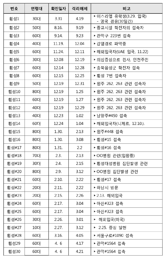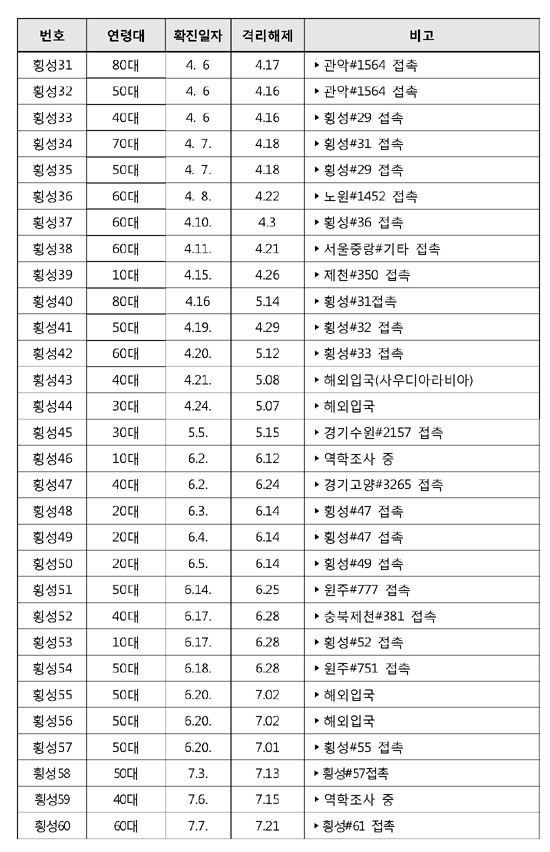 횡성군 확진자 분포를 보면 해외유입이 7명, 원주·횡성 지역감염이 38명, 타지역 유입 등 37명이다.