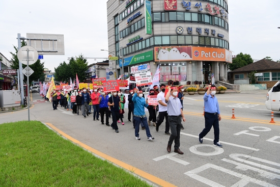 횡성군과 군의회, 횡성군송전탑반대대책위원회(위원장 차희수) 등 지역 기관·단체 회원 등은 지난 31일 군의회 앞에서 ‘송전탑 건설 결사반대’ 시위를 벌였다. 시위는 코로나19 방역지침에 따라 참가 인원을 99명으로 제한했다.
