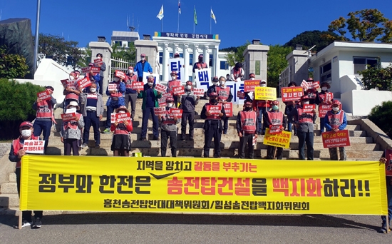 이날 발표한 공동선언문은 “그동안 한전은 입지선정위원회를 앞세워 민주적 절차를 무시하고 경과대역을 임의로 조작하면서 주민 갈등을 부추겨 마을 공동체를 교란시키고 있다.