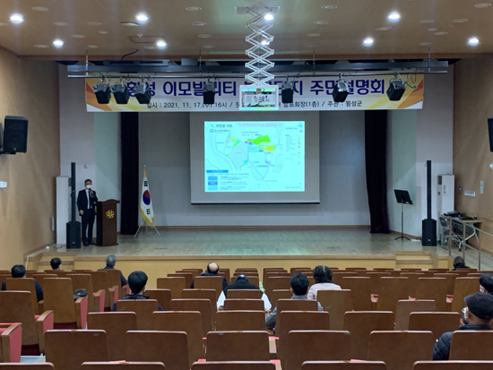 | 횡성 이모빌리티 복합단지 지구단위계획 수립을 위한 주민설명회가 지난 17일 오후 4시 횡성문화원 1층 발표회장에서 열렸다.