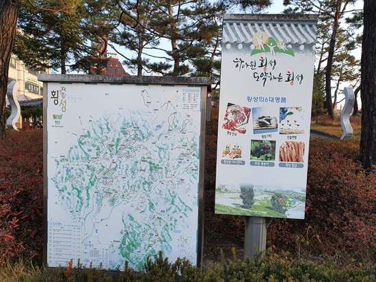 그런데 횡성 시가지에 있는 만세공원 인근에는 횡성관광 안내도와 횡성의 6대 명품 표지판이 설치되어 있다. 이곳엔 잡곡·절임배추·토마토·사과는 없어 반쪽짜리 홍보를 하고 있다. |