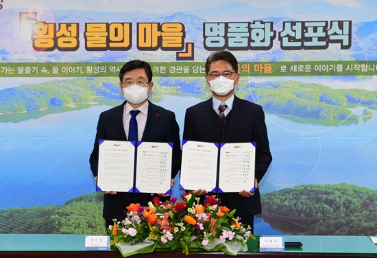 | 횡성군은 지난 10월 횡성 물의 마을 명품화 사업 기본구상을 수립한 가운데 지난 24일 오후 2시 군청 소회의실에서 한국수자원공사 및 물의 마을(섬강권역·8개리)과 함께 물의 마을 명품화 사업 선포식 및 업무협약식을 개최했다.