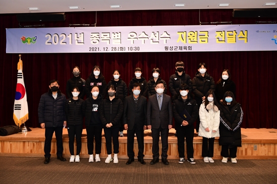 | 2021 종목별 우수선수 지원금 전달식이 구랍 28일 오전 10시 30분 횡성문화예술회관 1층 소회의장에서 열렸다.