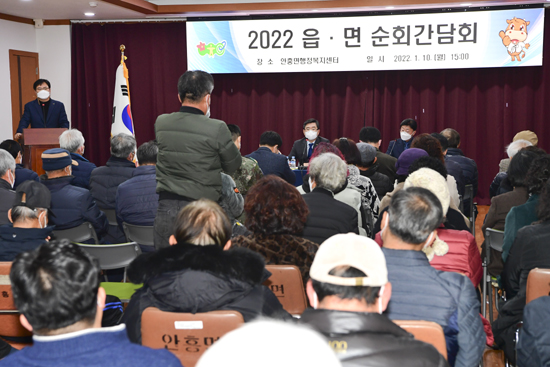 | 횡성군은 새해를 맞아 코로나19로 인해 힘든 시기를 겪고 있는 군민과 어려움을 함께 나누고, 현장에서 군민의 소리를 듣고 군정에 반영해 소통행정을 실현하기 위한 ‘2022년 읍면 순회간담회’를 실시했다.